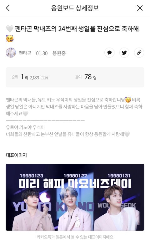 그 유니인지는 모르겠는데 세명 합쳐져서 올라온 응원보드가 있더라구!