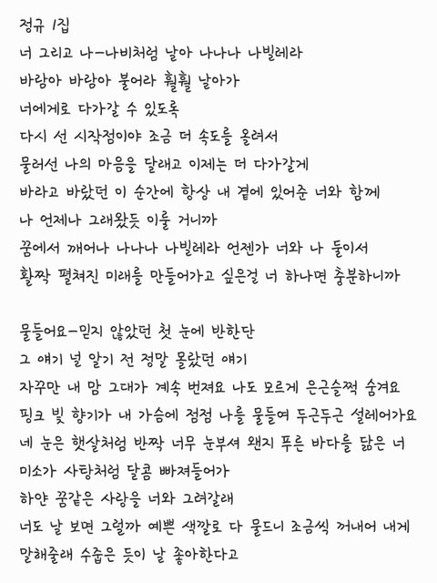 내가 좋아하는 여자친구 노래 가사 미니1~3집 정규 1집
