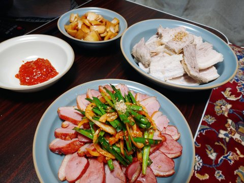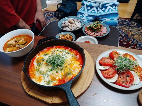 에그인헬 & 토마토 카프레제 & 된장찌개 & 돼지고기 수육 & 훈제오리고기