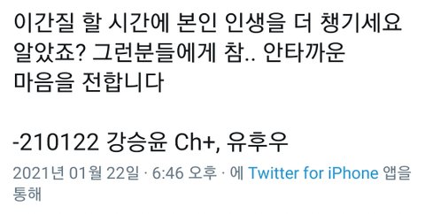 “ 이간질 할 시간에 본인 인생을 더 챙기세요 알았죠? 그런분들에게 참.. 안타까운 마음을 전합니다”