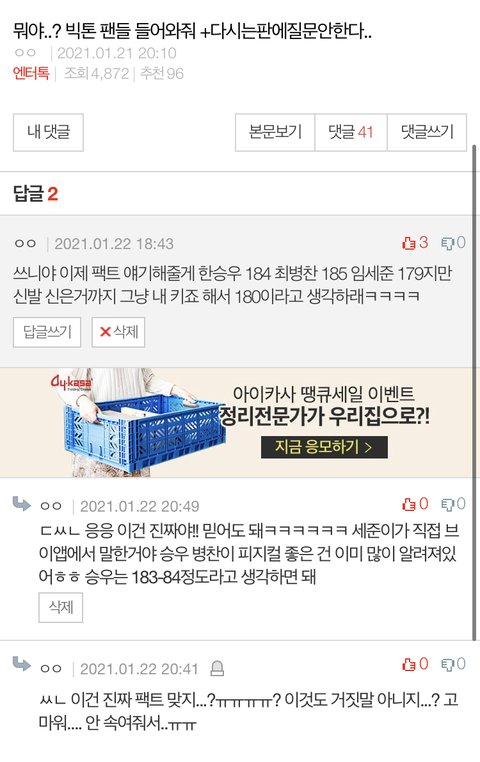 다시는 판에 질문 안한대ㅜㅠㅠㅠ 놀려서 미아내 쓰니얔ㅋㅋ 난 안 놀렸어 팩트 댓글 써줬어