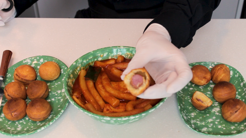 이건 새로 나온 신상 핫도그볼인데 국물에 찍어먹으면 예술입니다