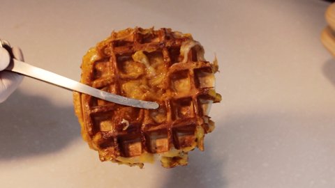 해쉬 브라운은 기름기를 머금고 있어서 와플을 만들면 바삭하고 식감도 좋아요