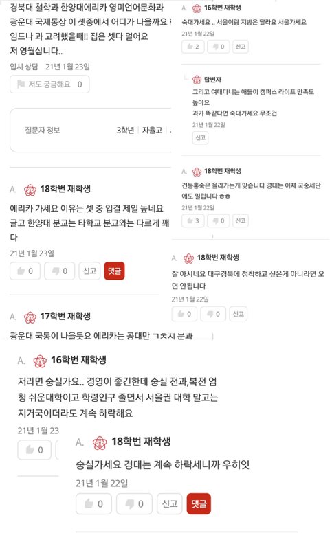 중경외시랑 겹치고 시세무 외lt도 한양대랑 겹치는데 여기 애들은 그아무도 자기라인 바꿔치기 안함