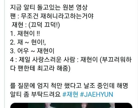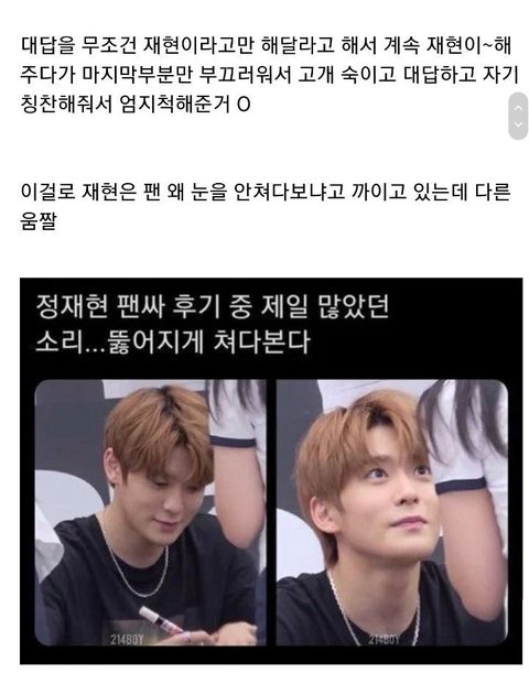 팬이 제일 사랑스러운 사람 자기로 말해달라고 물었는데 엄지 올려준거