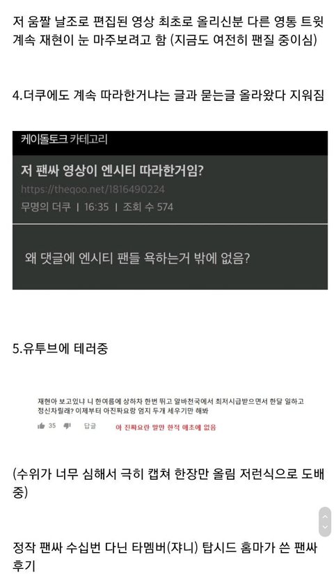 3.갑자기 머리채 잡힌 해당 팬덤과 그 멤버팬들은 억울한 상태 그래서 여시랑 트위터 글이 짜집기라고 해명 중