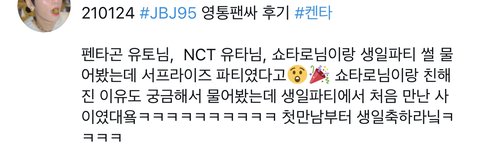 얼마전에 유타가 라디오에서 말했던 켄ㅌㅏ님 생파 비하인드 ㅋㅋ