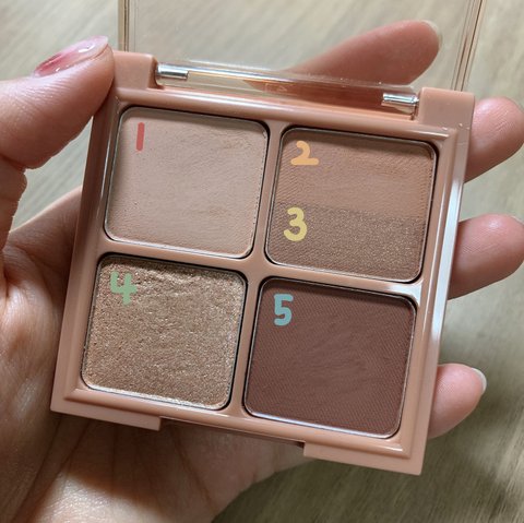 : 카톡 선물하기에서 섀도우랑 틴트 저렴하게 묶어서 팔길래 구매했음! (지금도 저렇게 판매하는지는 모르겠엉) 개인적으로 4구 섀도우가 활용하기도 좋고 가격대도 저렴해서 좋아함! 베이스 컬러가 베이지코랄? 느낌인데 이거 하나 쓱 발라주고 아이라인 + 마스카라 해줘도 너무 이쁨! 최근에는 이 섀도우만 사용해서 화장하고 있엉