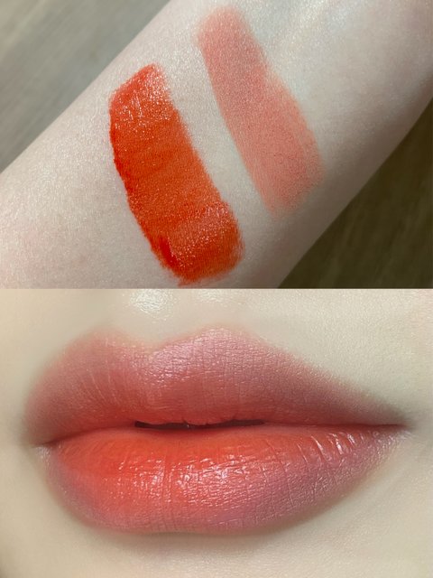 : 섀도우 사면서 딸려온 틴트인데 요즘 잘 사용하고 있어! 내가 좋아하는 오렌지레드 색상이고 발색도 좋고 지속력도 괜찮은 편이야! 마스크에 묻어남도 적음!! 쉘누드랑 색 조합이 너무 이쁨ㅠㅠ