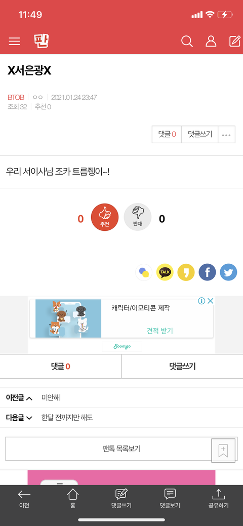 와 무슨 여기 팬톡 글