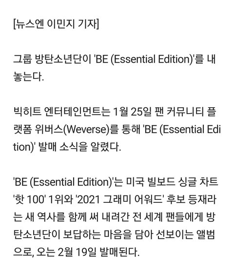 19일에 나오는 에센셜은