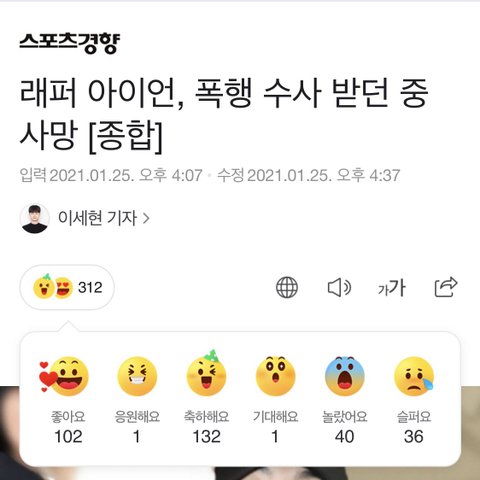 래퍼 아이언 사망 기사 반응 뭐야