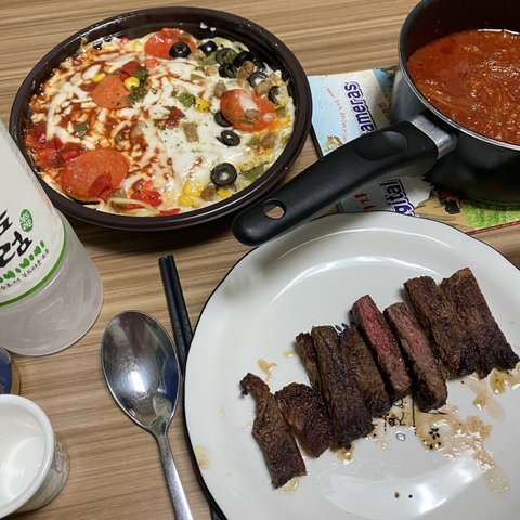 결국 집앞 편의점에서 손바닥만한 스테이크사서 남자친구가 정성을 다해 구워줬지만.. 이빨 나갈뻔 했네요; ㅋㅋㅋㅋ