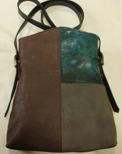 가죽공예-패치백(Leather craft-Patch bag)-양가죽 조각을 이어서 다양한 컬러로 콜라보하였으며,가죽단추와 가죽레이스로 장식하여 제작한 패치백입니다.(마디샤)
