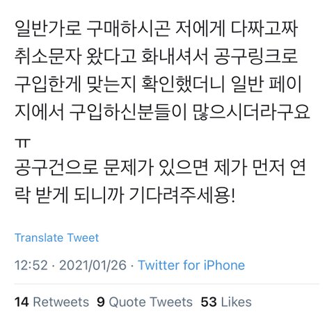 일반 페이지에서 산 사람들 취소 문자 간거래