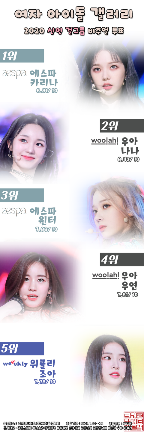 역시 카리나 ㄷㄷ 신인 비주얼 투표 1위