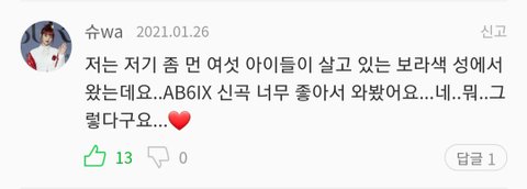 + 그런 의미로 AB6IX 신곡 많이많이 들어주라 제목은 불시착이얌 아이들 신곡도 좋드라 ❤