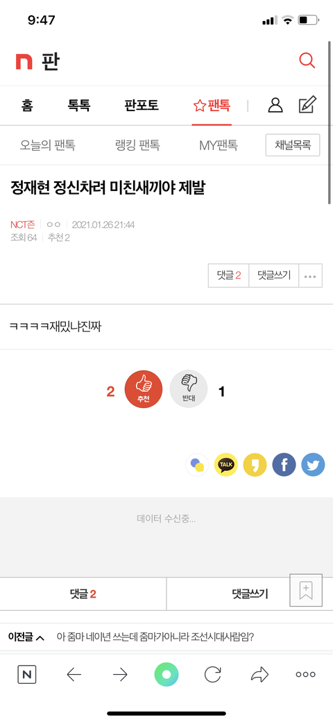 어제 옆톡에서 재현이 엄청 까더니 안되니까 엔터 베톡 만들어놨어ㅜㅜ 이번에 기사도 갑자기 얘들이 난리치더니 기사까지 내게 만들었거든!ㅜ그래서 어제 재현이가 팬들 안심하라고 라방 와준거 같은데 별타격없으니까 어제 라방 끝나고 이렇게 난리쳤거든