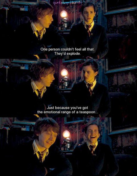 헤르미온느가 론에게 너는 공감대가 티스푼 만하다니까 하는 대사가 애드립.