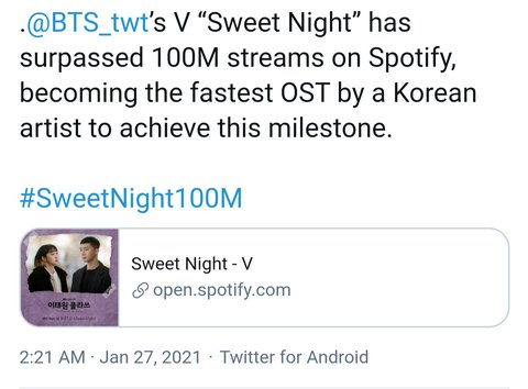스윗나잇 스퐅히파이 일억 스트리밍 돌파