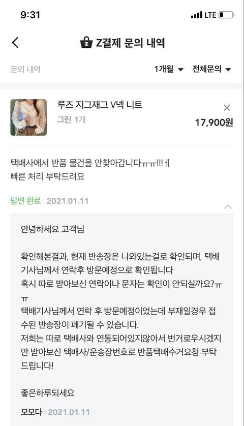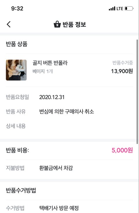 이미 다른 상품들은 반품 버튼이 사라진지 오래였고