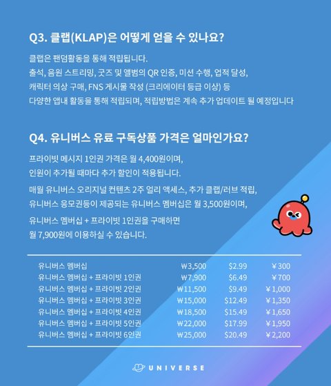 6. 유니버스에서만 볼 수있는 그룹별 자컨, 뮤비 등등이 있는 듯
