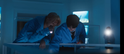 게다가 뮤비에서 선우가 20큐브에 들어가 있는 장면이 있음. 밑의 사진에서 파란색으로 동그라미 친 부분 잘 보면 20큐브라고 적혀있음. 빨간 공간의 엔하이픈 중 선우만 유일하게 파란 공간의 존재(Owen=Nemo)임. 즉 20큐브의 어항에 Nemo가 들어가 있는 상황.
