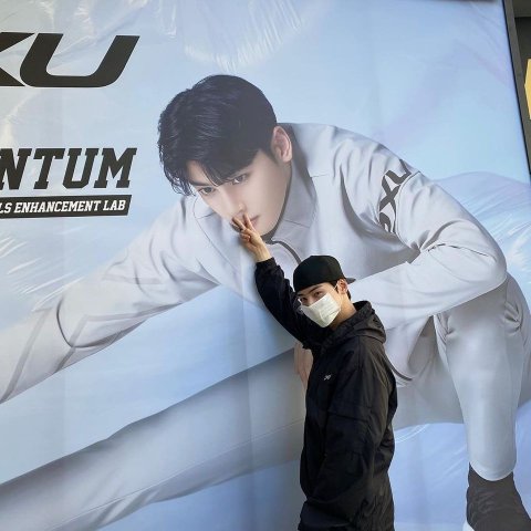 자신이 모델이 된 포스터? 간판? 앞에서도