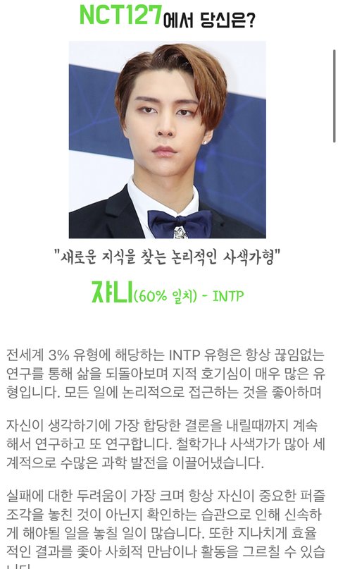 난 쟈니 나왔어 근데 나 엠비티아이 인팁은 아닌데 ㅋㅋㅋㅋ