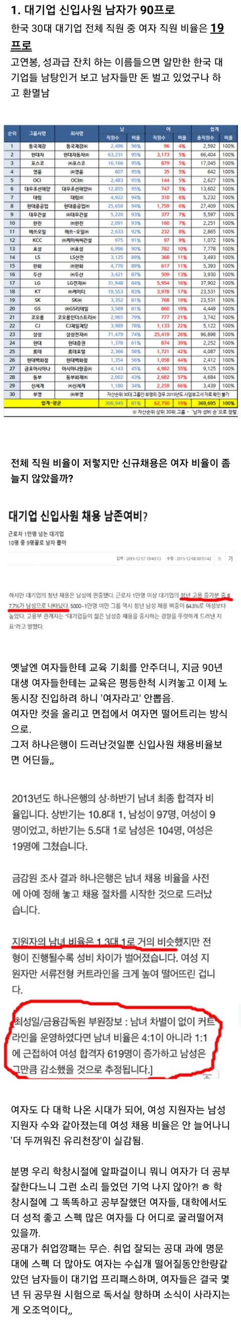 저신입사원 대부분이 문과가 아니고 이공계 공대출신들임 공대생 남녀비율이 저정도 되니까 딱 비율 그대로 뽑힌건데 그게 왜 남녀차별이지