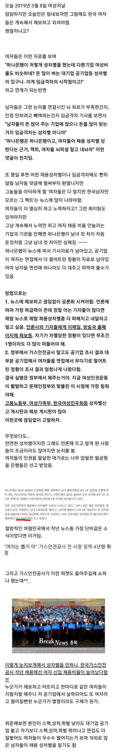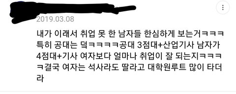 항상 그렇잖아 초등학교든 중학교든 고등학교든 대학교든 여자가 공부 더 열심히하고 더 잘하는데 막상 회사는 남자만 뽑네 ㅋㅋㅋㅋㅋ진짜 어떻게든 ㅈㅏ트릭스유지하려고 ㅋㅋㅋ