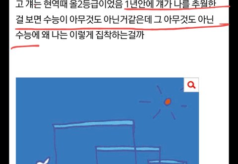 현역때 걔보다 훨씬 잘했던 나는 걔보다도 못한애였구나 이런 생각이 들어서 자괴감 듬 분명 난 현역때도 올1등급이었고 걔는 현역때 올2등급이었음 1년안에 걔가 나를 추월한 걸 보면 수능이 아무것도 아닌거같은데 그 아무것도 아닌 수능에 왜 나는 이렇게 집착하는걸까