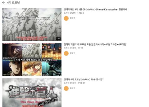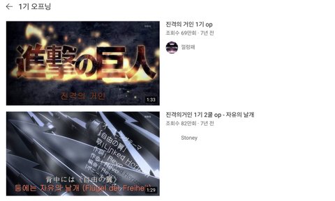 애니 이름 안 쓰고 저렇게 오프닝 쓰면 진격거가 제일 먼저 뜸