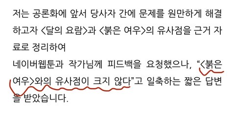 네이버 웹툰에 얼마 전에 연재를 시작한 <달의 요람>이라는 작품 알고 있니? 이 웹툰은 하마 작가님의 <붉은 여우>와 상당히 유사성을 보여서 표절 의혹이 제기되고 있어.