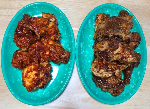 오븐용 에어프라이어 산 기념으로 만든 간장 반 양념치킨♡
