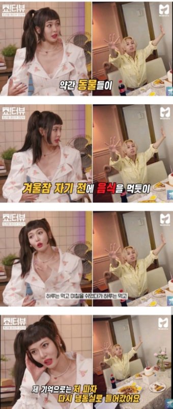 현아: 저는 마시지 않지만 혹시 이분이 마실까봐 느끼 할 수도 있고 난 마시지 않지만 혹시 마시고 싶을 수 있 으니까 그리고 콜라 하나 있으면 더 예쁘잖아요.