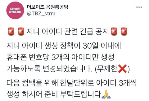 우리 음총팀이 최근에 올린 글 다 본지 모르겠지만 지니 아이디 이제 무재한 생성할 수 없대ㅠ 그니까 우리 모두 일찍부터 만들어서 나중에 킹덤 위해서 음총팀한테 많이 기부하자!