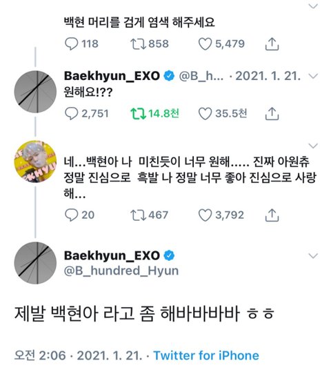 와 백현이 흑발ㄹ아ㅏ