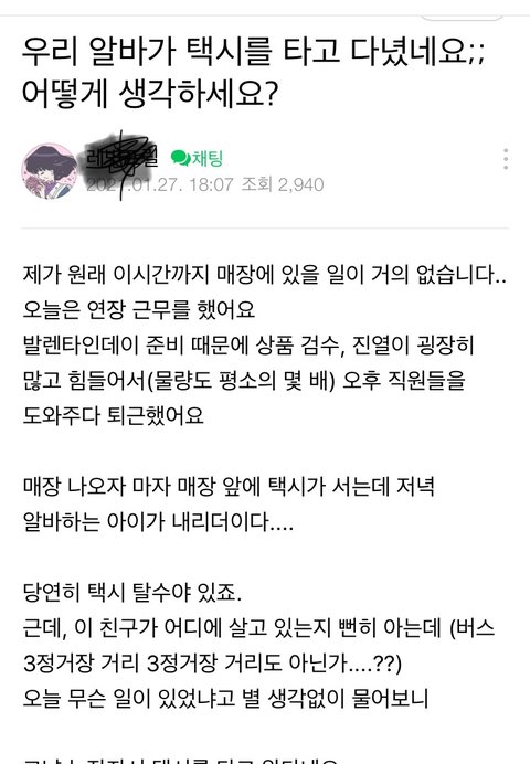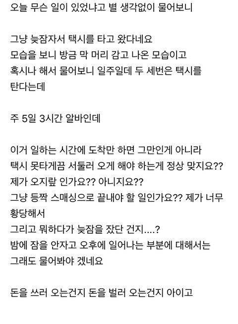 알바가 택시타고 다니는게 화나는 사장