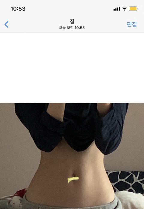- 어떤 댓쓰니가 참외배꼽 때문에 가리는 거라고 했는데 이게 맞아...ㅠㅠ 어렸을때부터 콤플렉스였어서 가리고 올렸어 부끄럽기도 하고 ㅋㅋ