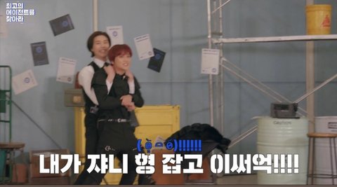 동역이 눈 가리고 움직일 때 막구가 팔로 잡아줌