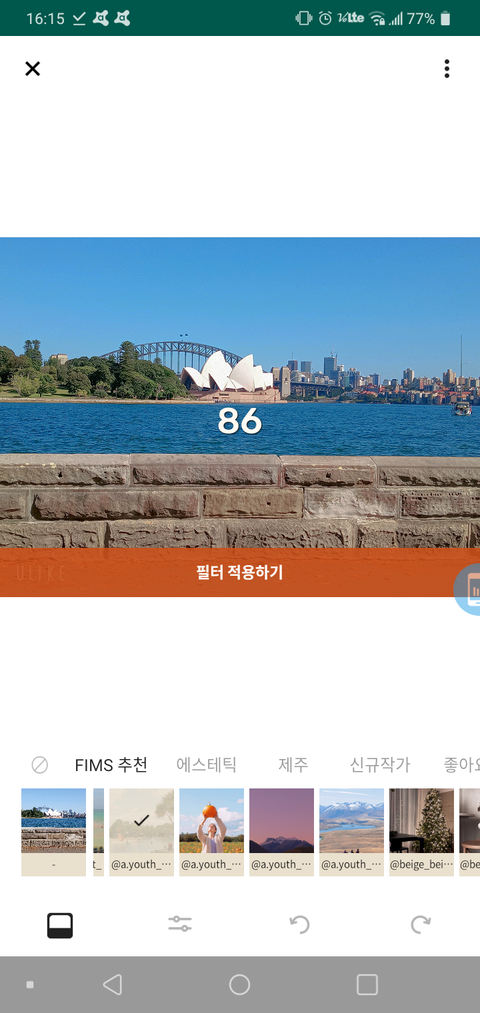 fims라는 앱인데 사진작가님들이 직접 보정필터 만들어서 "무료로" 넣어놓으신 앱이거든, 사용법도 진짜 간단하고 광고 한번만 보면 보정기능 적용됨.. 지금 앱이 나온지 얼마 안된것같은데 진짜좋아.
