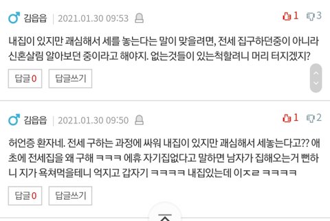 그리고 읍읍씨 저는 집이 두개라고 한적 없어요. 지금 사는집 1+임대 주는집 2 입니다 ^^ 인증은 믿거나 말거나 퍼왔다고 정신승리하시던가요 ㅎㅎ