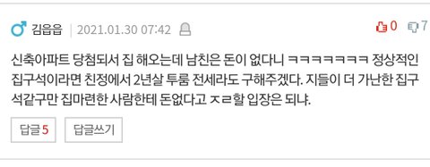 남친이 보태주실 거 전혀 없다고 해서 그럼 저도 굳이 제집에 살필요가 없다고 생각해서(제집에 그냥 남친이 몸만 들어오는 거나 마찬가지니까요)