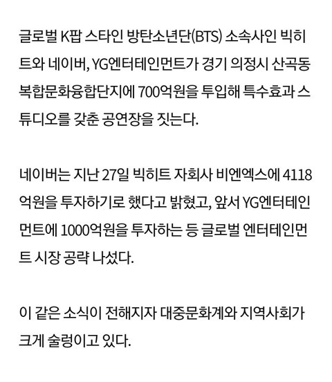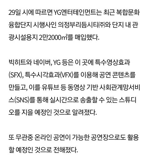 빅히트, 네이버, YG가 특수효과 공연장 짓는대