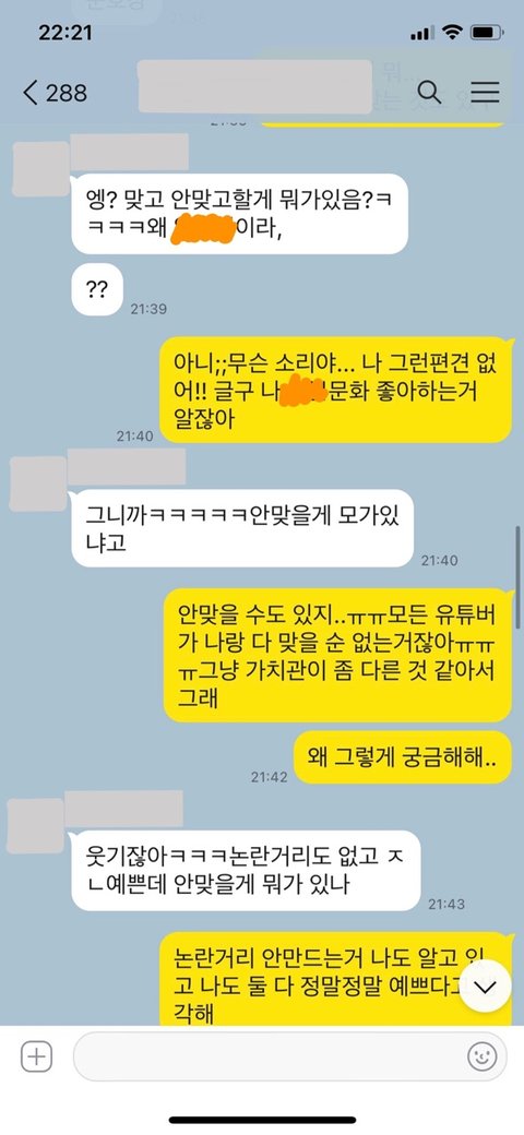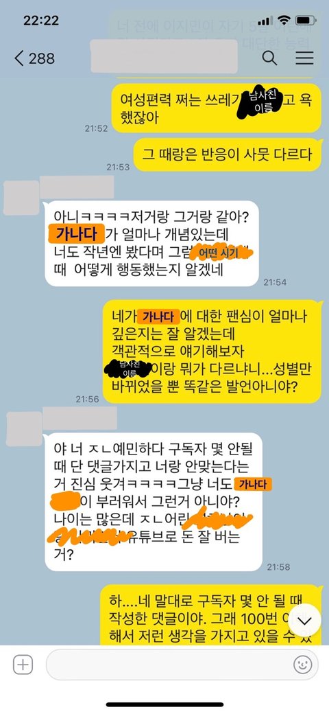 ‘나도 원래 봤었지만 해당 유튜버가 가진 가치관과 내 가치관 간에 괴리가 있는 것 같아서 어느 순간 영상을 보지 않게 됐다’고 얘기하자 그 말에 꼬리를 물고 늘어지기 시작했습니다.