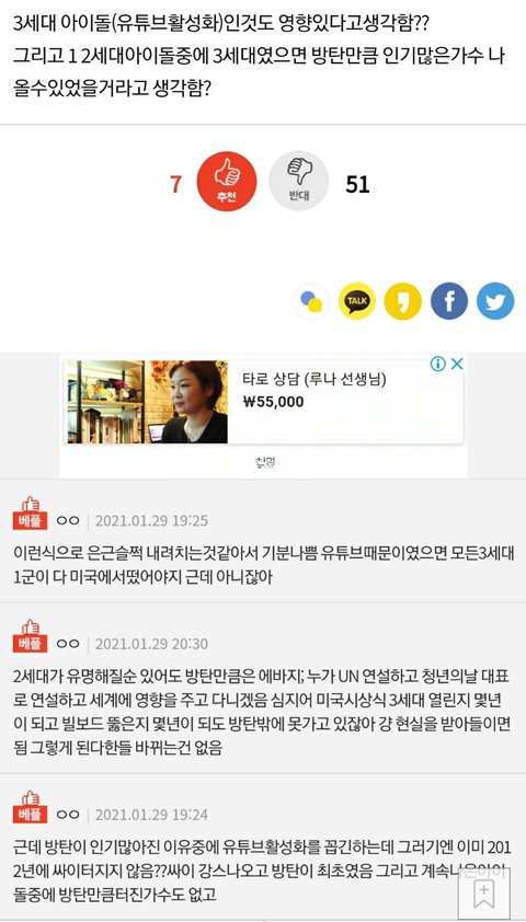2세대 팬인데 그런 댓글들 다 추팔하는 타팬이나 머글임... 그래서 나도 유튜브 댓글은 예쁜 것만 보려고 노력중이고ㅠㅠ 그만 하라해도 어딘가엔 있는게 비교 댓글이니까 무시하는 게 제일 좋은 방법 같음