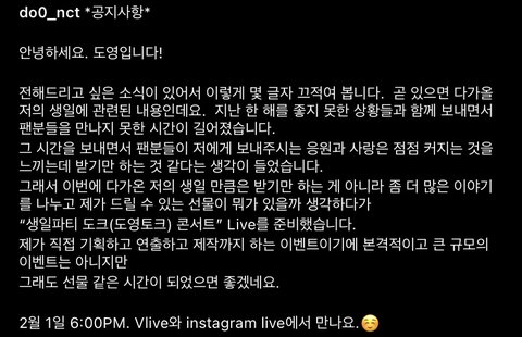 2월 1일 오후 6시 도영이 생일 라이브 (도크콘서트)