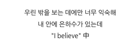 I believe중 이 가사는 남을 보고 자신과 비교하며 의식하는 것에 익숙해져가는 것 을 비판하는 가사야