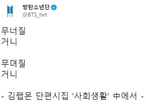 + 헐 톡선 올라왔네...... 몇몇 아미들 힘들어하는거 많이 보여서 맘이 아푸다.... 힘내 다들 앞으로 행복만 하라고!!!!!!!! 또 우리 방탄 많이 사랑 해주라ㅠㅠㅠㅠㅠㅠㅠㅠㅠㅠ 방탄 아포방포